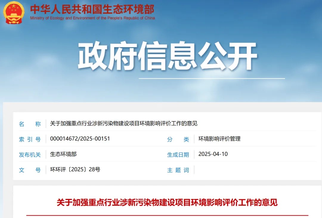 生态环境部近日印发《关于加强重点行业涉新污染物建设项目环境影响评价工作的意见》。首次系统规范重点行业建设项目环评工作中新污染物的环境管理要求。