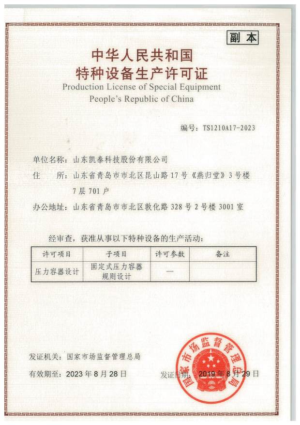 热烈庆祝我公司取得“固定式压力容器规则设计”许可证,成为TSG07-2019新规则实施后青岛首家取得证书单位。设计范围覆盖A1、A2、A3、A4、D1、D2级别,是公司发展史上迈出的重大一步。