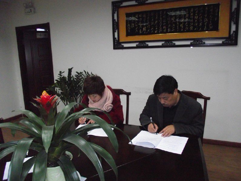2012年1月9日下午4时,公司董事长-张若烈,代表公司董事会与总经理-李训尧在四楼会议室签订2012年经济责任制合同,公司财务总监、综合部、财务部、保供部、各经营单位列席会议,聆听了董事长对2012年公司经营目标及管理服务规划。
