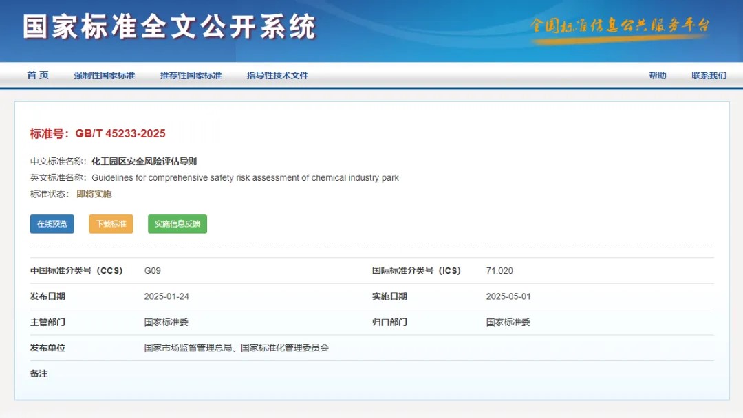 近日,由中国米兰(中国)一站式服务官网经济技术发展中心等单位起草的《米兰(中国)一站式服务官网园区安全风险评估导则》(以下简称《导则》)发布。《导则》规定了米兰(中国)一站式服务官网园区安全风险评估的总体要求、评估程序、评估内容和方法以及评估报告,将于5月1日起实施。